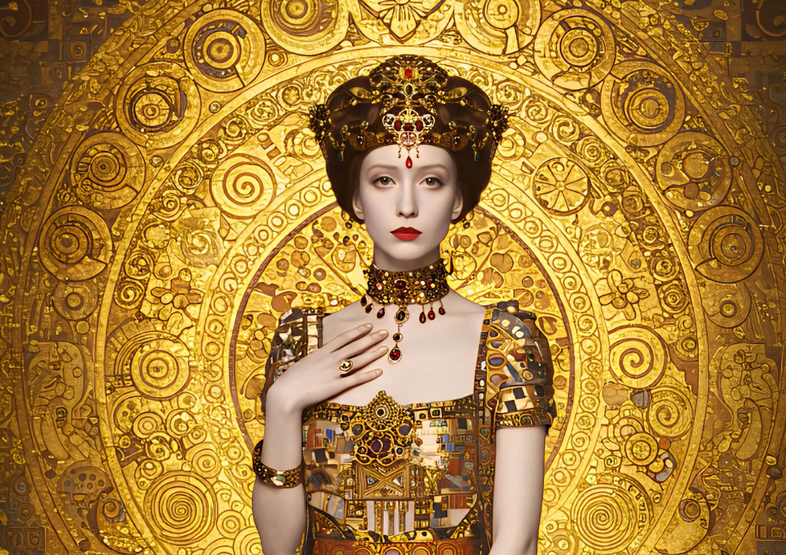 • Distinctive style blending myth, symbolism, and Art Nouveau elegance.